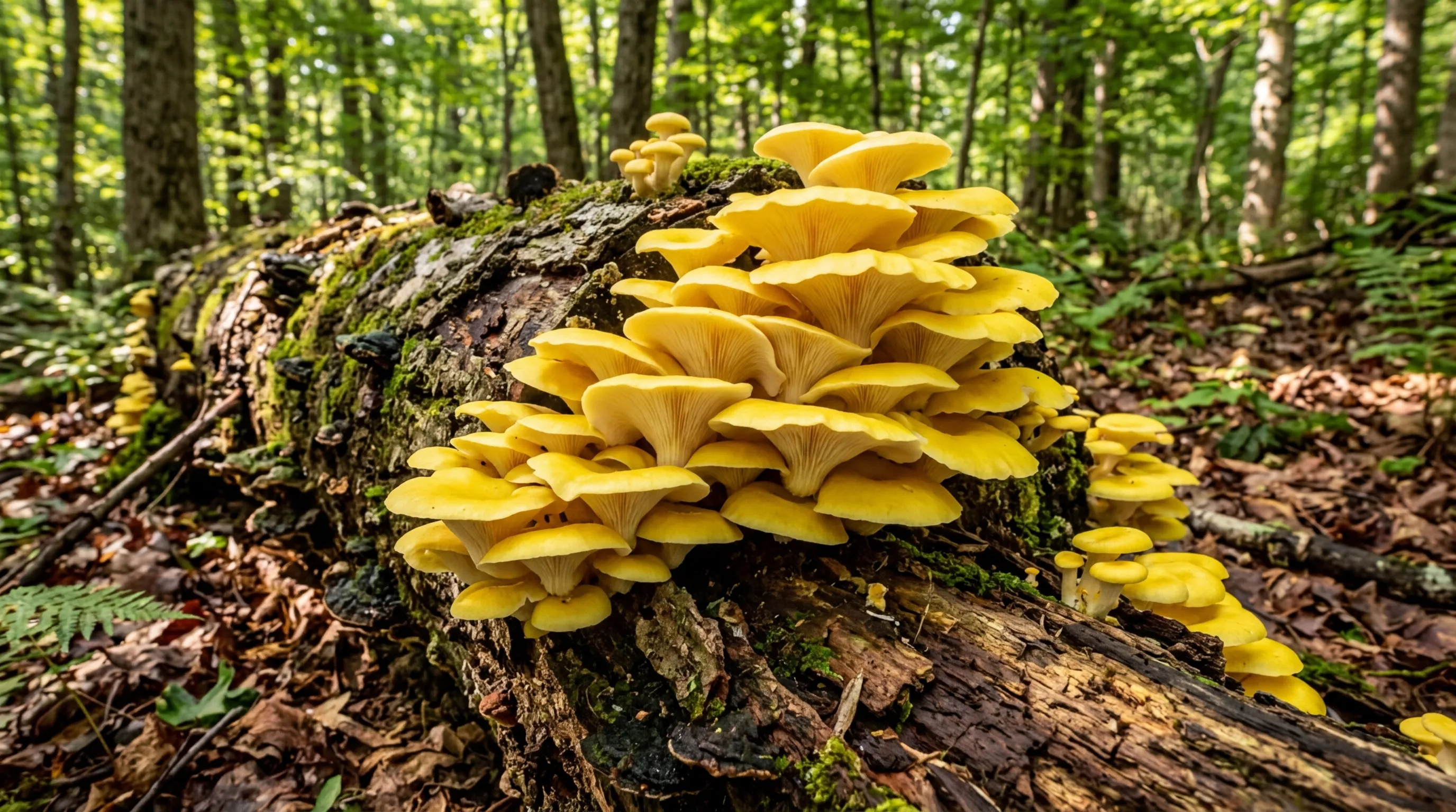 But the real advantage may be artificial. Decades of commercial breeding selected golden oysters for fast growth, vigor, and high yields, traits that make an excellent crop but also, inadvertently, an excellent invasive competitor. Multiple genotypes are now established in wild North American populations, suggesting enough genetic diversity for the species to adapt to local conditions. And once established, removal is physically impossible. The mushrooms that fruit on a log or stump are only the reproductive structures. Below the surface, an extensive network of mycelium penetrates deep into the wood and surrounding soil.