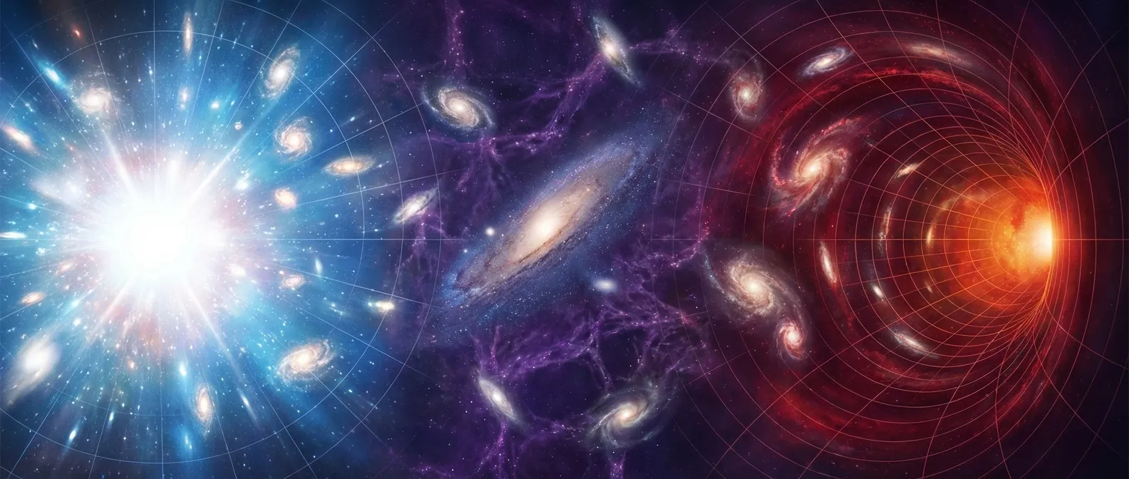 Then, in late 2025, data from two of the world's most powerful dark energy observatories landed on the same unexpected conclusion. The acceleration is slowing. And a Cornell physicist named Henry Tye ran the numbers to their logical endpoint: the universe doesn't just stop expanding. It reverses. Everything that flew apart after the Big Bang comes back together in a cosmic collapse, a scenario physicists call the Big Crunch.